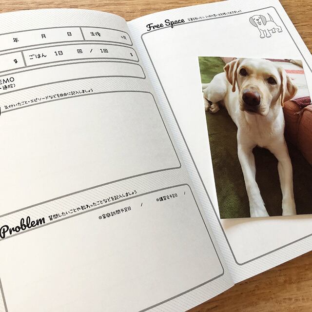 実際にパピーウォーカーをしている時、楽しくつけられる『母子手帳』があればなぁ…という想いから作った、愛犬育児日記帳です。